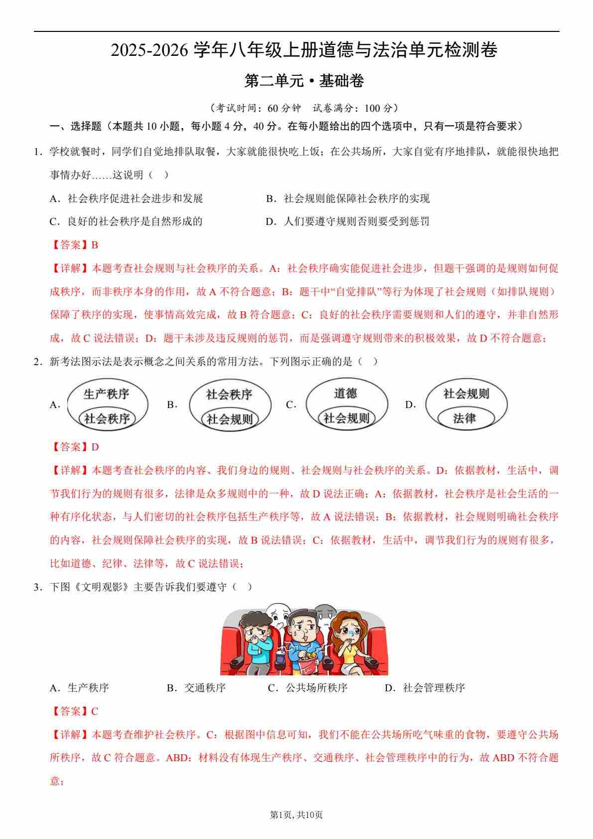 【八上道法】第二单元测试·基础卷(解析版)