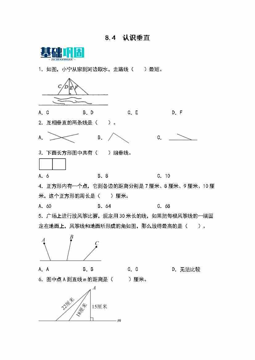 首页 > 全部 > 分层作业 > 8.4  认识垂直 同步分层作业(学生版)(苏教版)