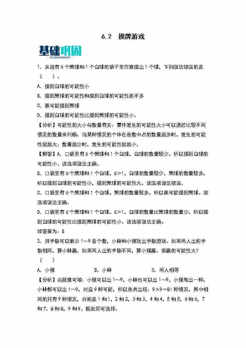 6.2  摸牌游戏 同步分层作业(教师版)(苏教版)