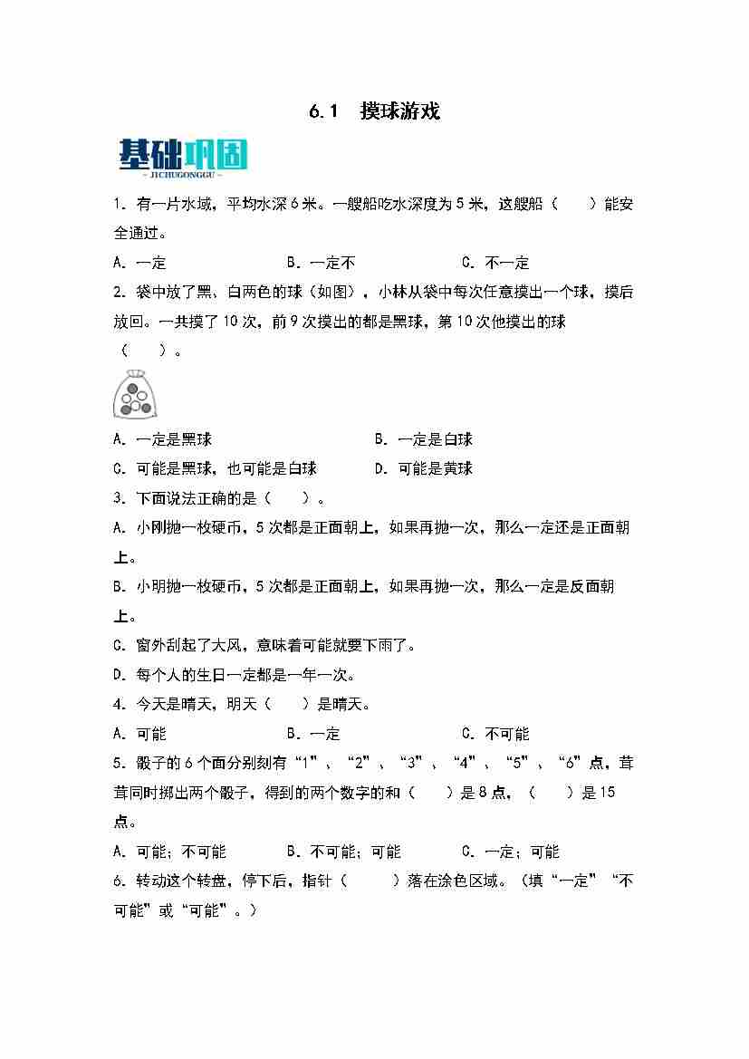 6.1  摸球游戏 同步分层作业(学生版)(苏教版)