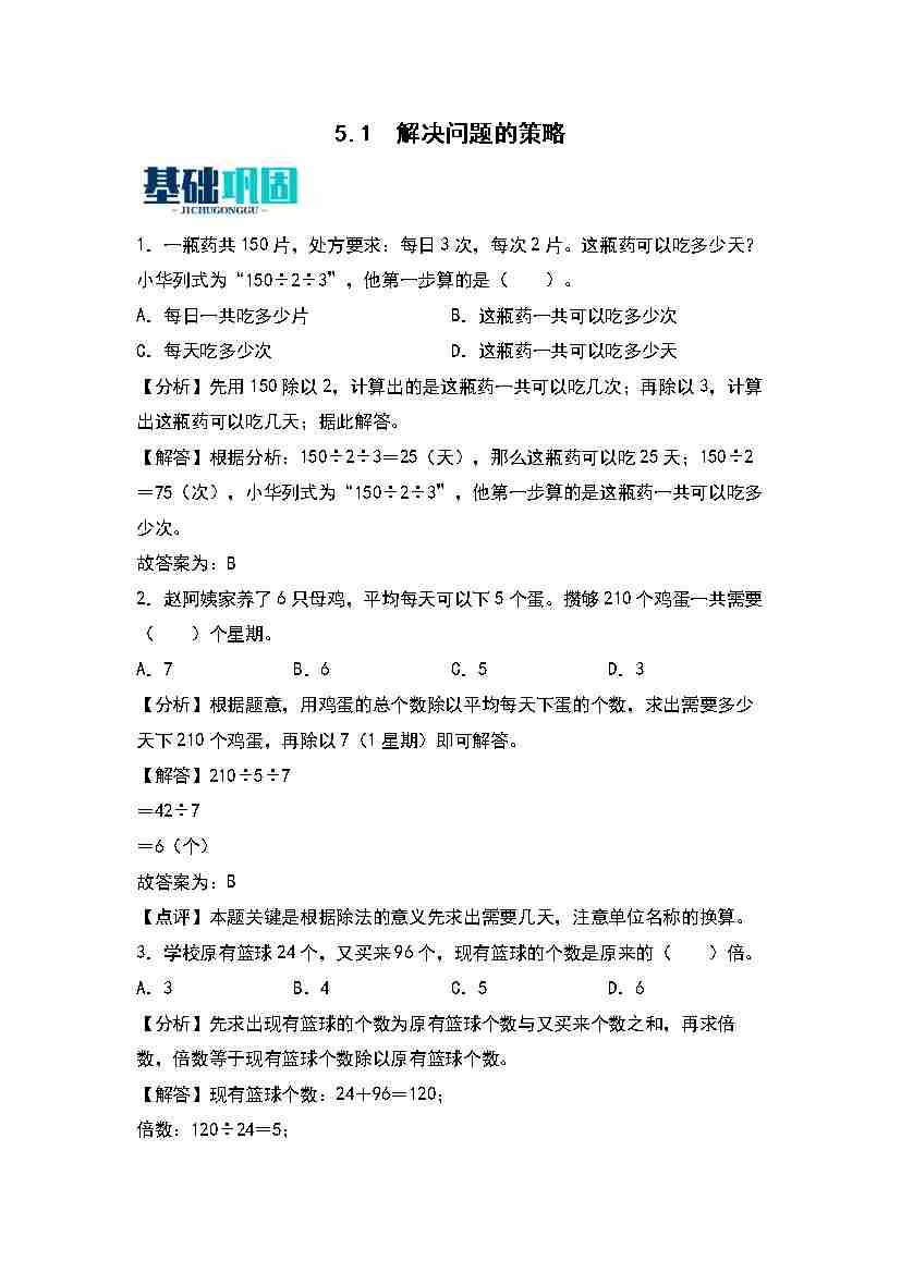 5.1  解决问题的策略 同步分层作业(教师版)(苏教版)
