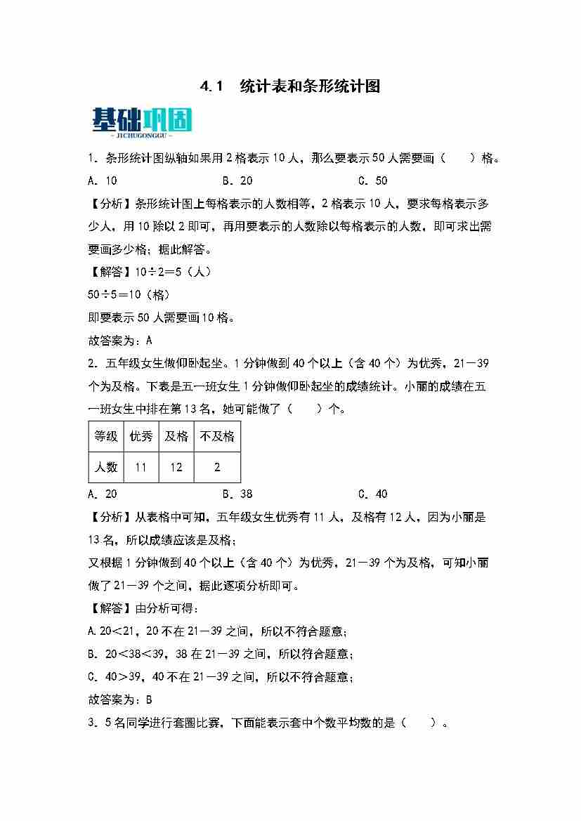 首页 > 全部 > 分层作业 > 4.1  统计表和条形统计图 同步分层作业(教师版)(苏教版)