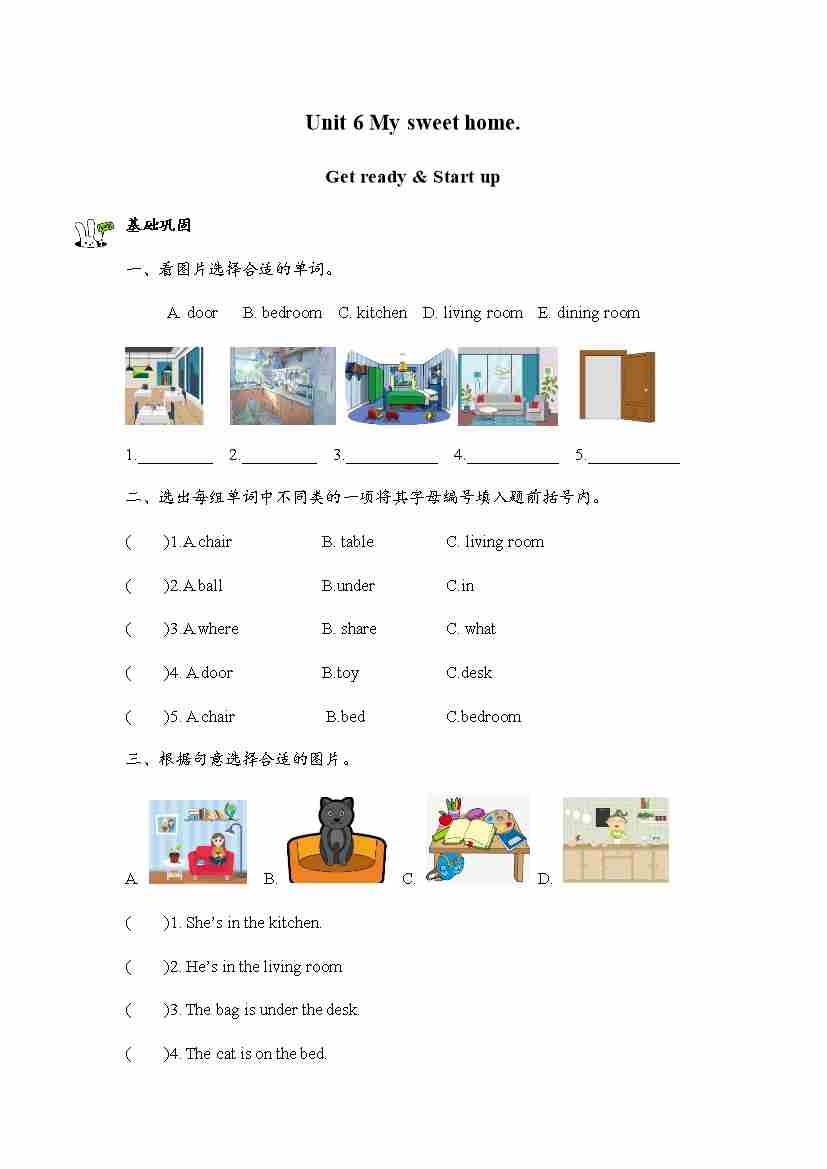 首页 > 全部 > 同步作业 > Unit 6 My sweet home Get ready & Start up(第1课时)同步分层作业-2024-2025学年英语三年级上册(外研版三起·2024秋)