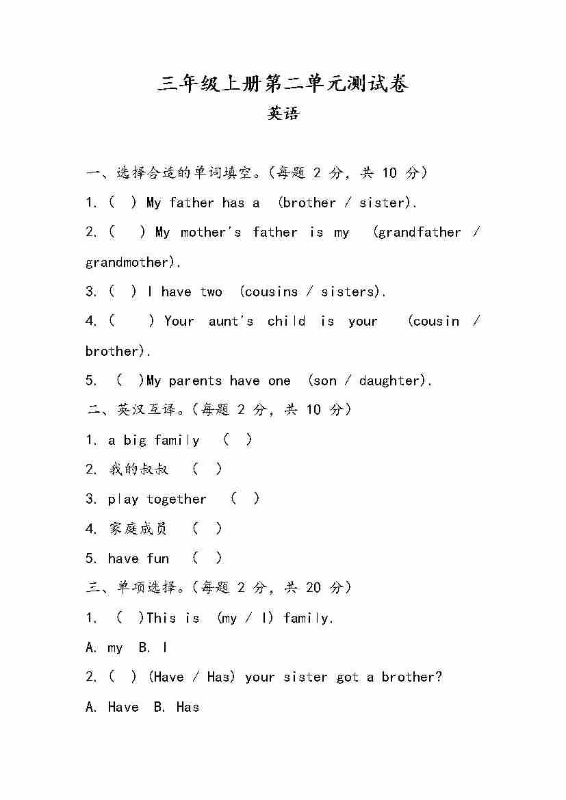 首页 > 全部 > 单元测试 > 三上沪教Unit 2 What’s interesting about families?(单元测试)- 2024-2025学年沪教版(2024)英语三年级上册