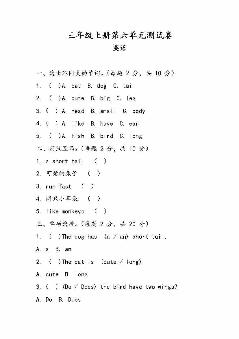 三上沪教Unit 6 What do we like about small animals(单元测试)- 2024-2025学年沪教版(2024)英语三年级上册
