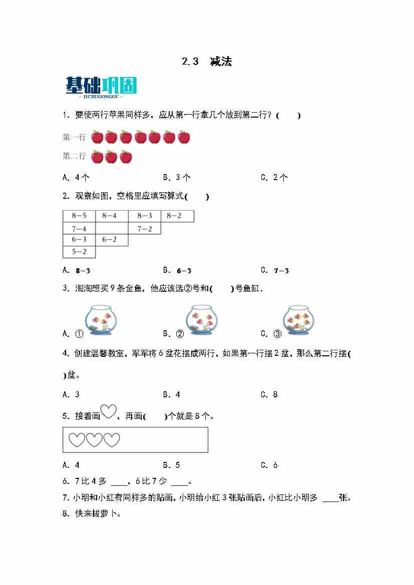 首页 > 全部 > 同步练习 > 2.3  减法 同步分层作业(学生版)(苏教版·2024秋)