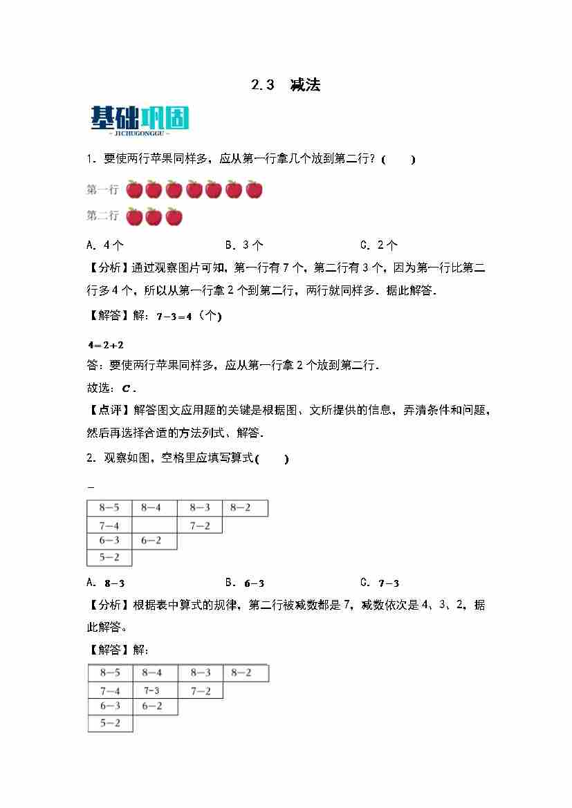 首页 > 全部 > 同步练习 > 2.3  减法 同步分层作业(教师版)(苏教版·2024秋)