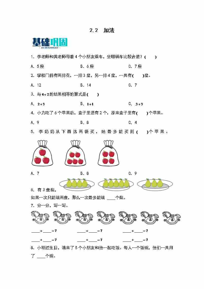 首页 > 全部 > 同步练习 > 2.2  加法 同步分层作业(学生版)(苏教版·2024秋)