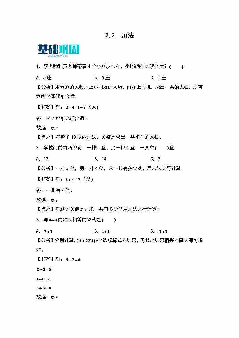 首页 > 全部 > 同步练习 > 2.2  加法 同步分层作业(教师版)(苏教版·2024秋)