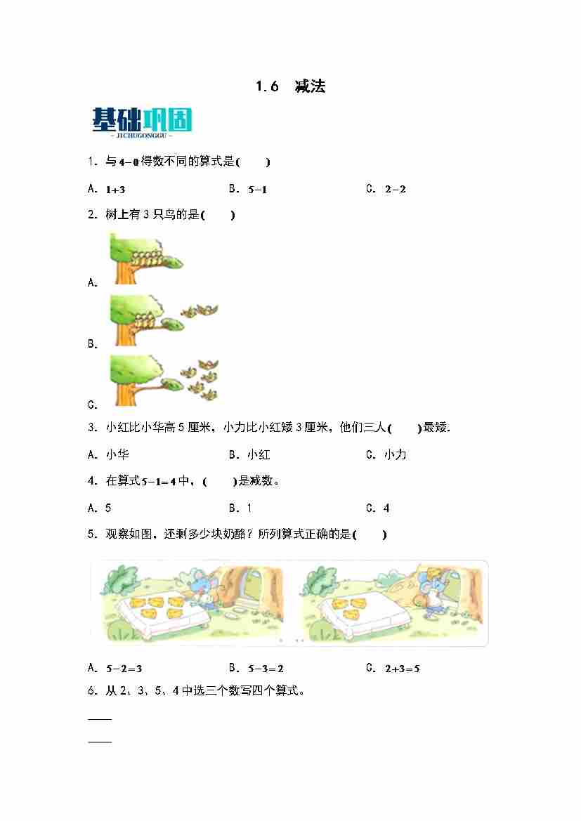 1.6  减法 同步分层作业(学生版)(苏教版)