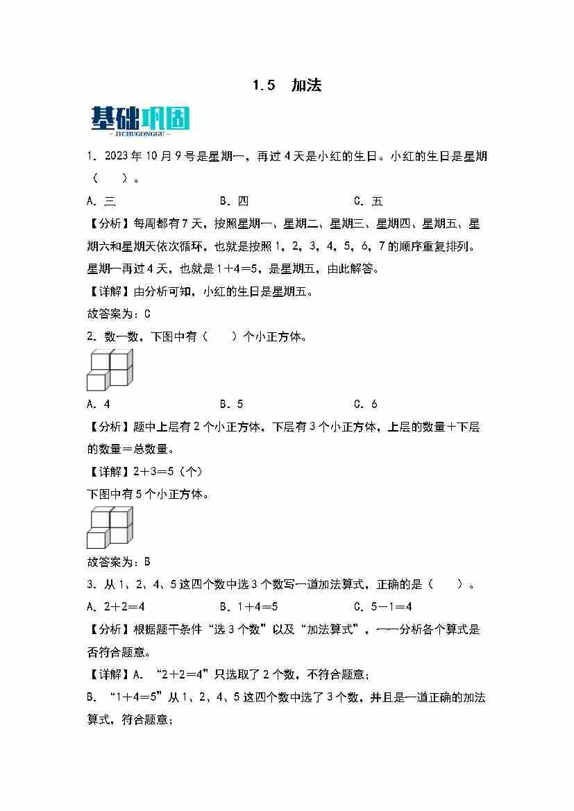 首页 > 全部 > 同步练习 > 1.5  加法 同步分层作业(教师版)(苏教版)