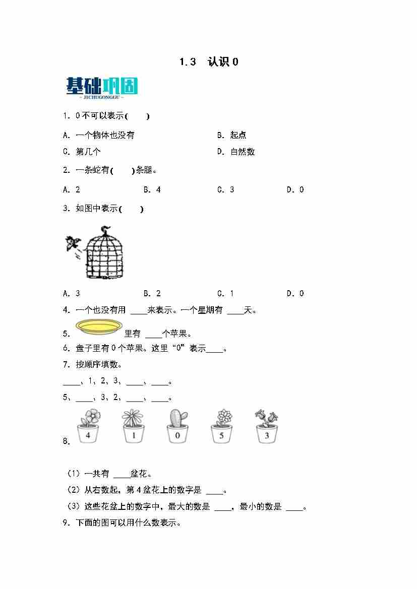 首页 > 全部 > 同步练习 > 1.3  认识0 同步分层作业(学生版)(苏教版)