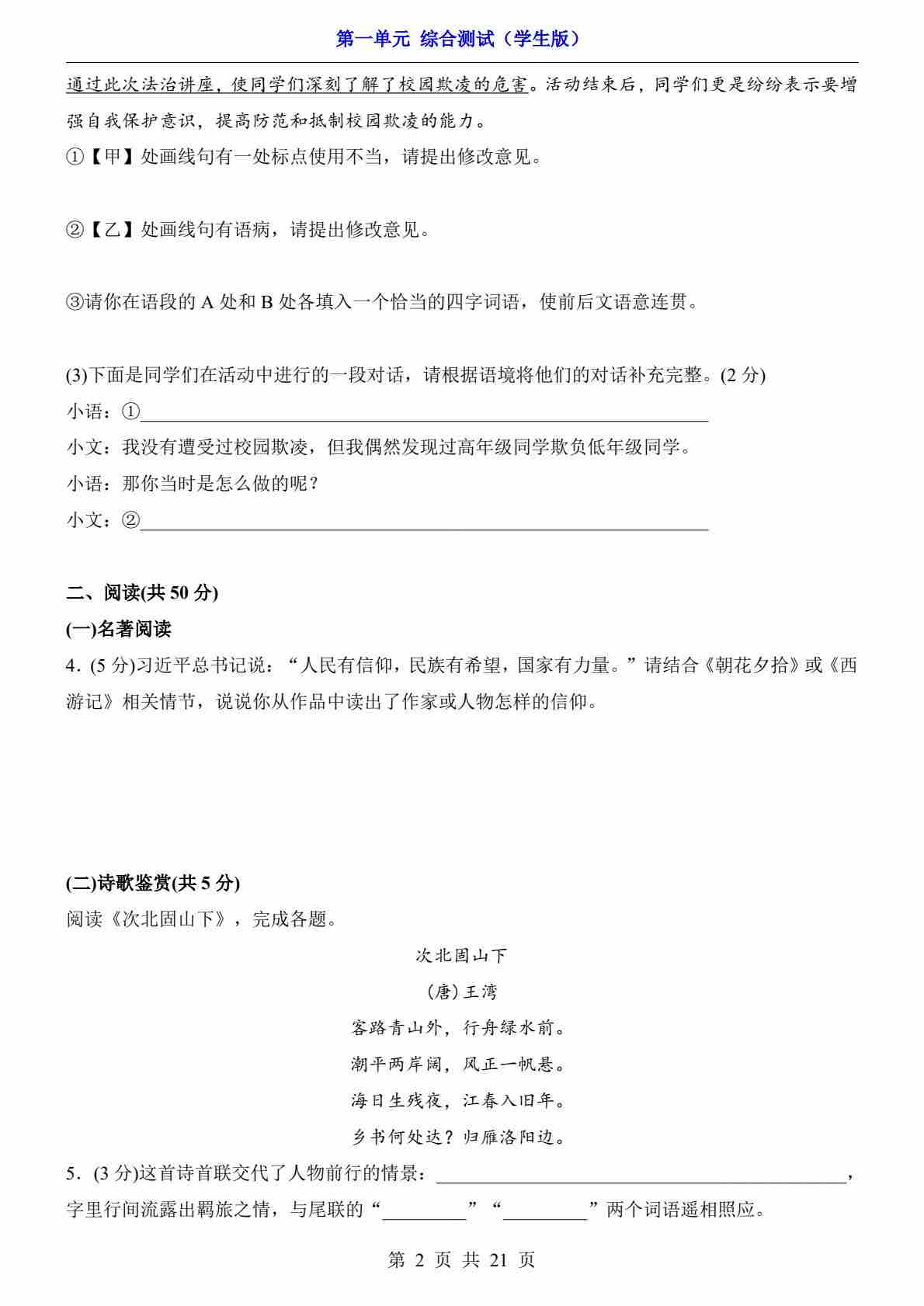 第1单元(综合测试)