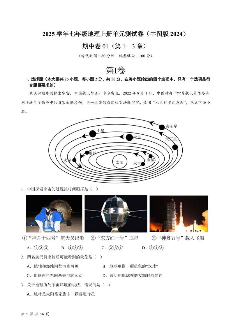 首页 > 全部 > 期中试卷 > 期中卷01-2025学年七年级地理上册单元速记·巧练(中图版2024)(解析版)