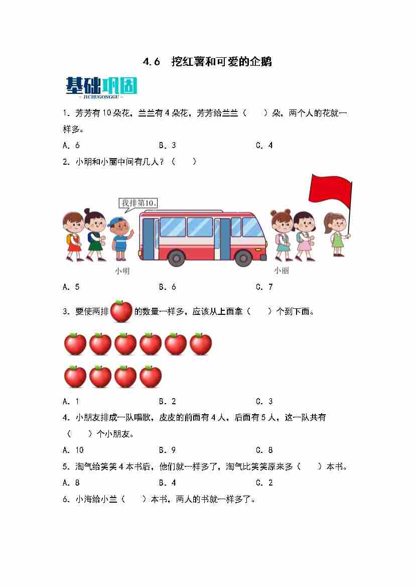 首页 > 全部 > 同步作业 > 4.6  挖红薯和可爱的企鹅 同步分层作业(学生版)(北师大版·2024秋)