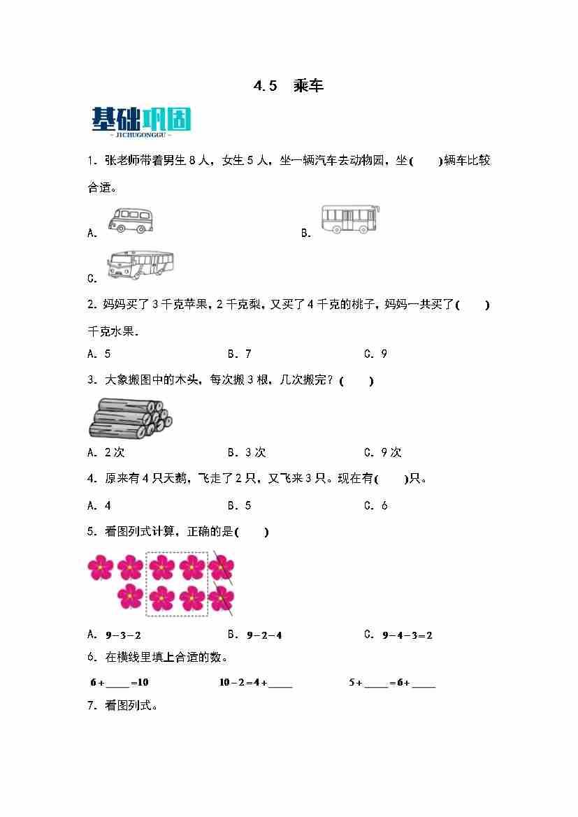 首页 > 全部 > 同步作业 > 4.5  乘车 同步分层作业(学生版)(北师大版·2024秋)