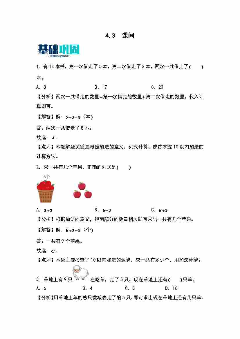 4.3  课间 同步分层作业(教师版)(北师大版·2024秋)