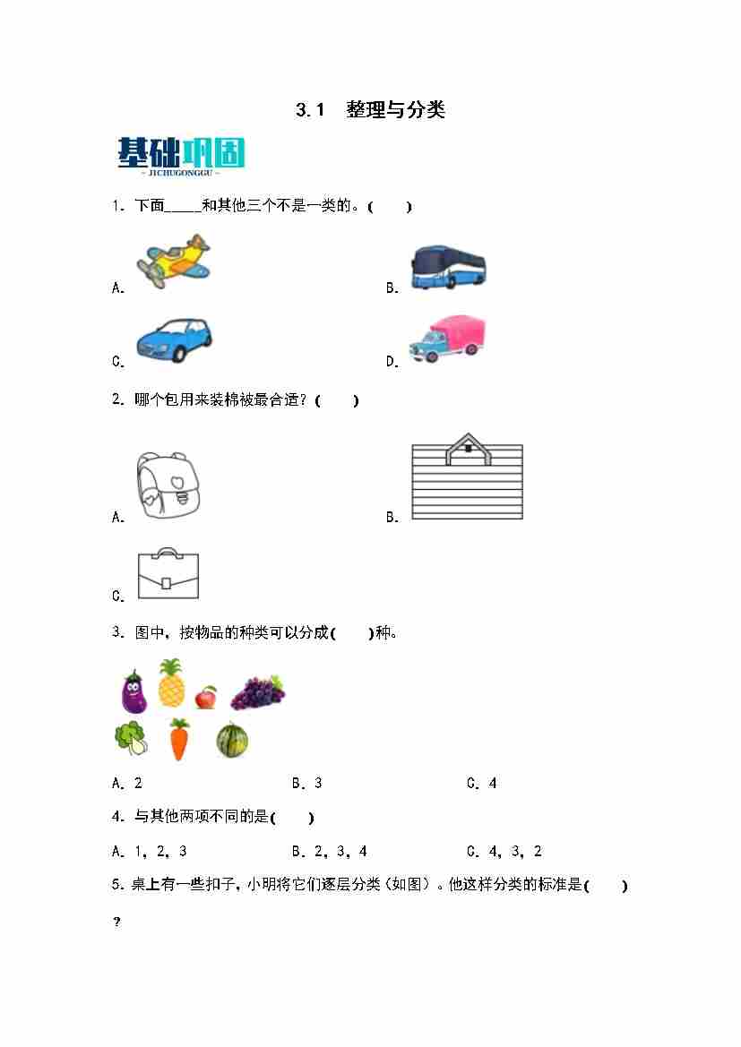 首页 > 全部 > 同步作业 > 3.1  整理与分类 同步分层作业(学生版)(北师大版·2024秋)