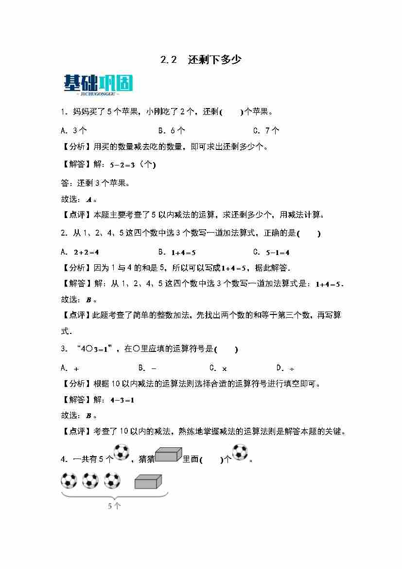 2.2  还剩下多少 同步分层作业(教师版)(北师大版·2024秋)