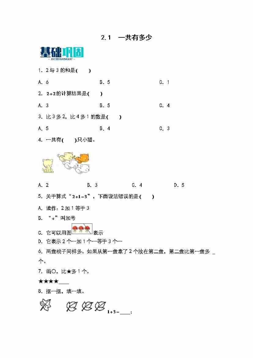 2.1  一共有多少 同步分层作业(学生版)(北师大版·2024秋)