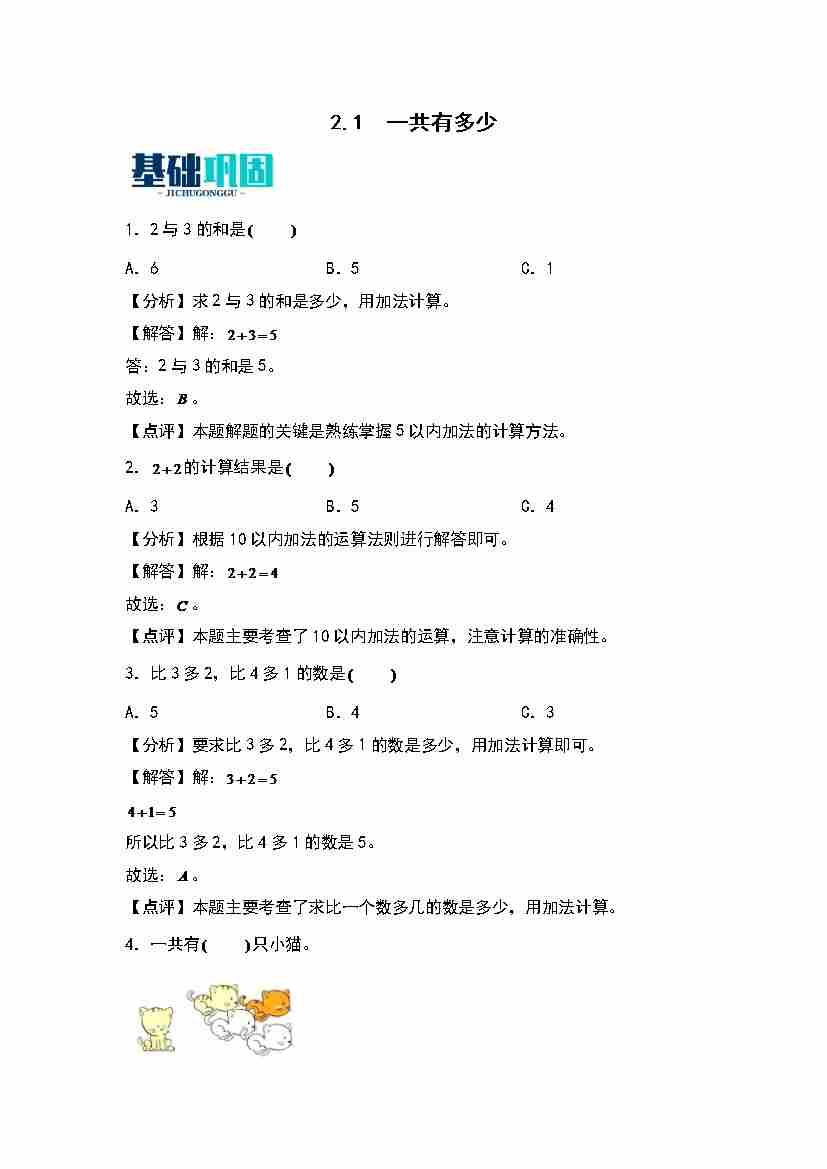 2.1  一共有多少 同步分层作业(教师版)(北师大版·2024秋)