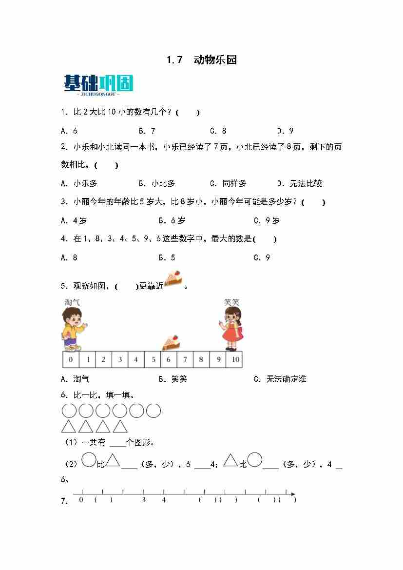 首页 > 全部 > 同步作业 > 1.7  动物乐园 同步分层作业(学生版)(北师大版)