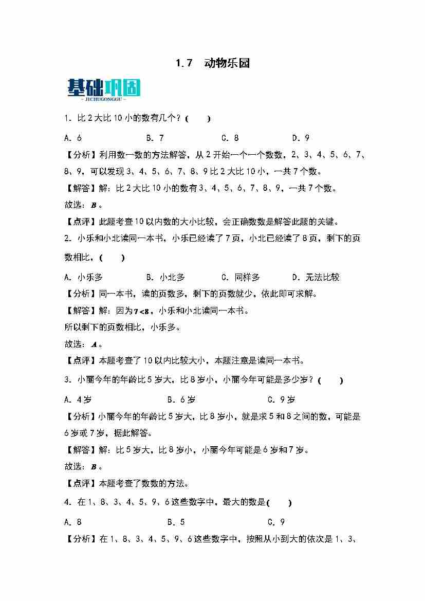 首页 > 全部 > 同步作业 > 1.7  动物乐园 同步分层作业(教师版)(北师大版)
