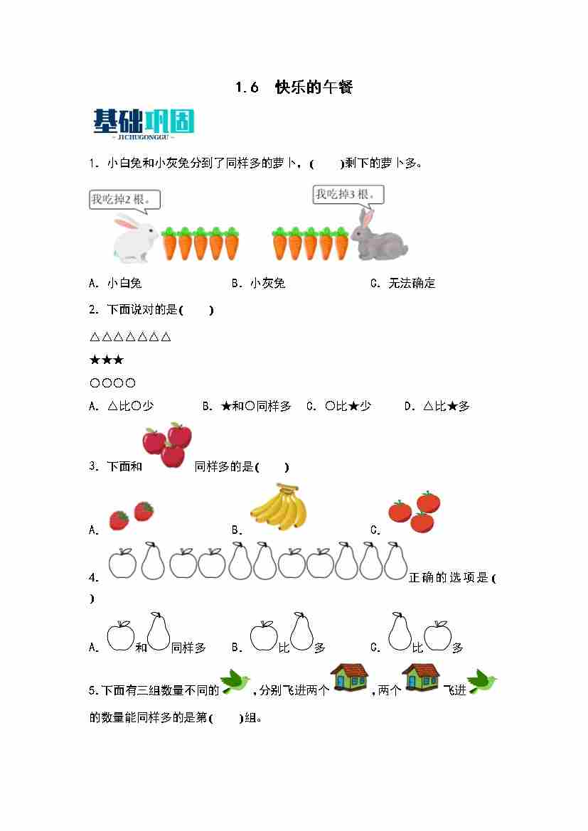 首页 > 全部 > 同步作业 > 1.6  快乐的午餐 同步分层作业(学生版)(北师大版)