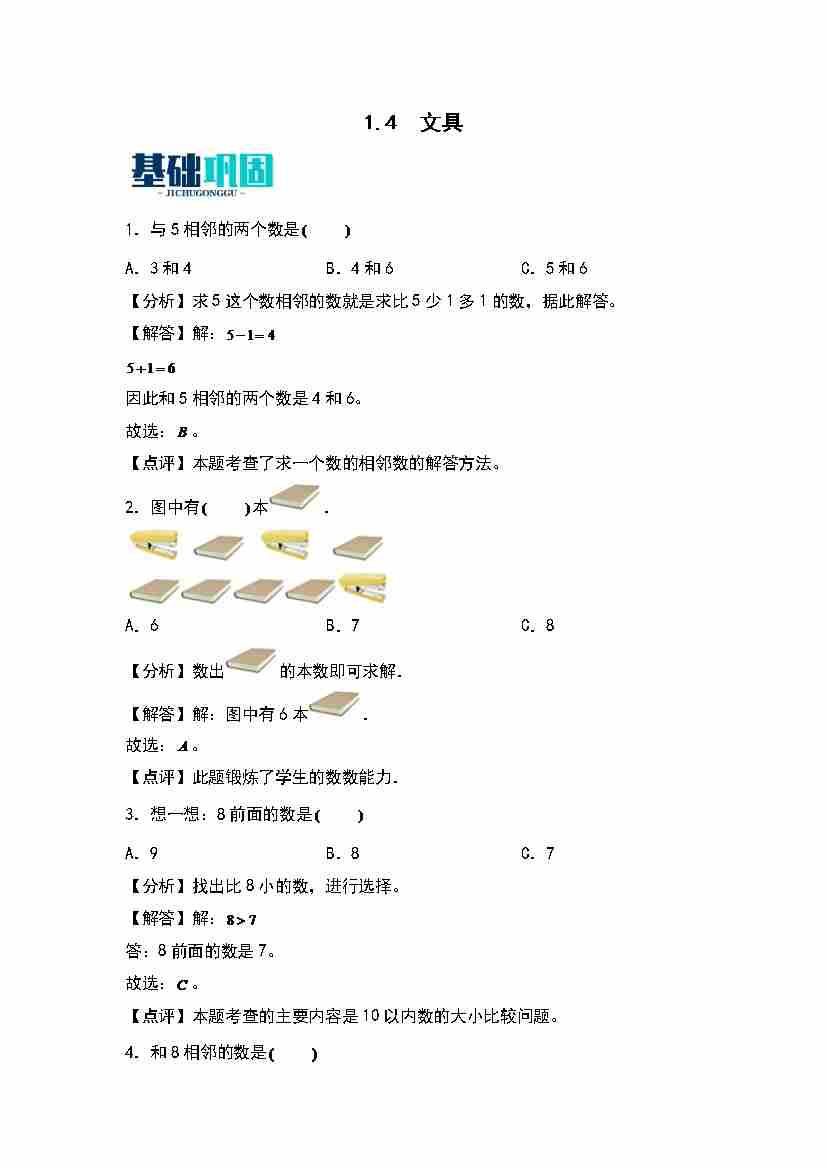 首页 > 全部 > 同步作业 > 1.4  文具 同步分层作业(教师版)(北师大版)