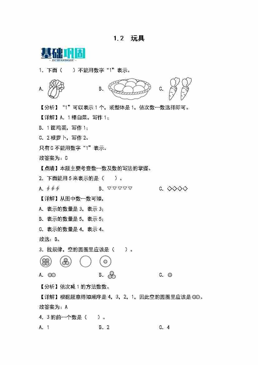 1.2  玩具 同步分层作业(教师版)(北师大版)