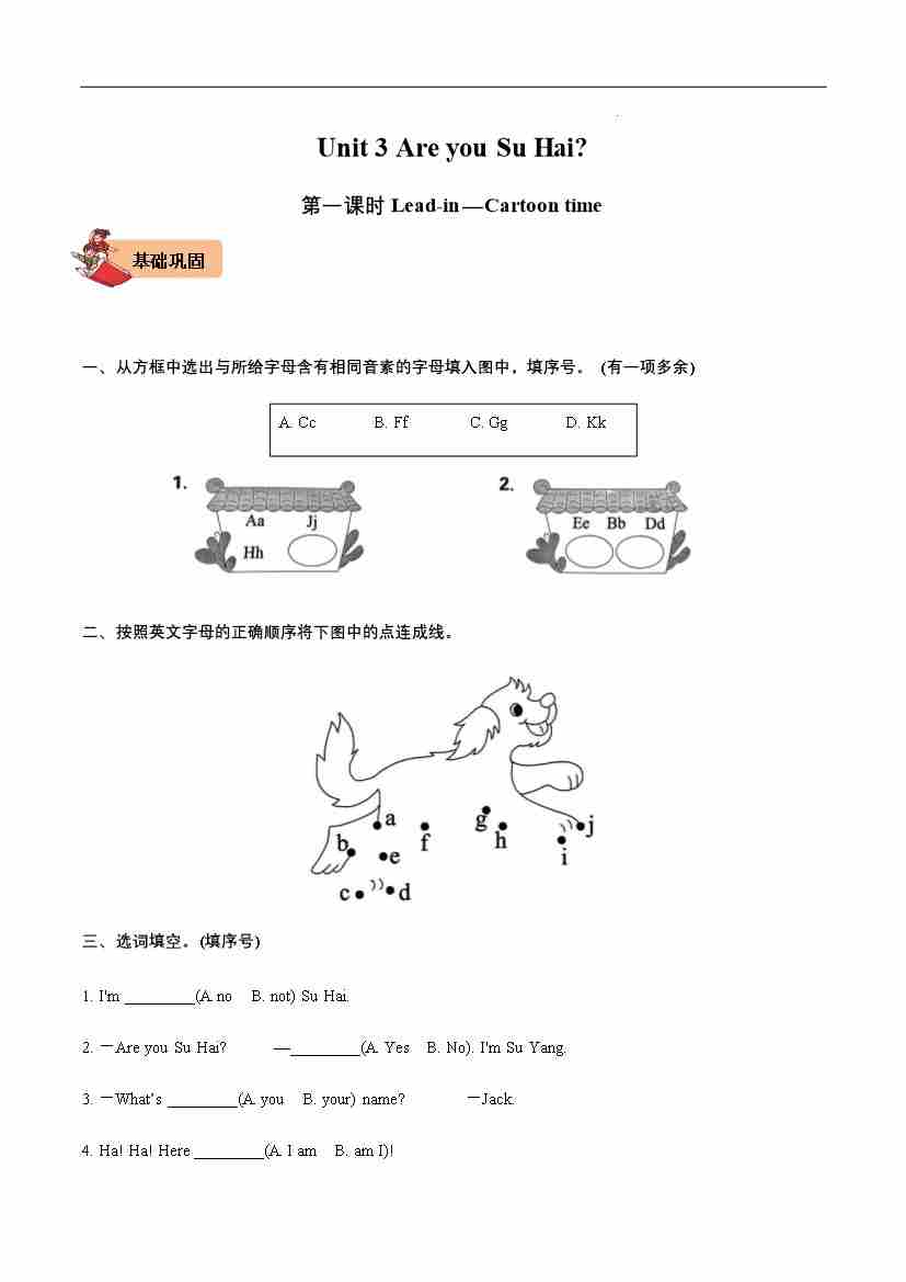 Unit 3 Are you Su Hai Lead-in—Cartoon time-2024-2025学年三年级英语上册同步分层作业设计系列(译林版三起)