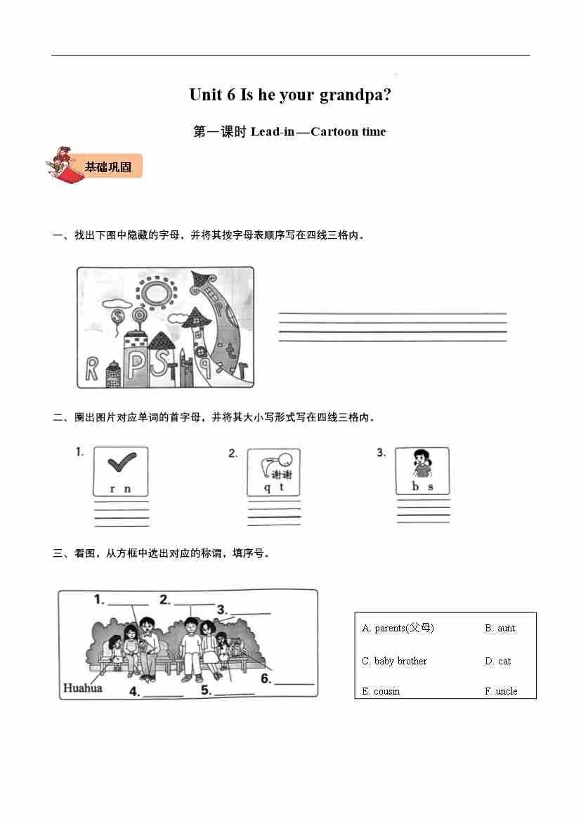 首页 > 全部 > 同步练习 > Unit 6 Is he your grandpa Lead-in—Cartoon time-2024-2025学年三年级英语上册同步分层作业设计系列(译林版三起)