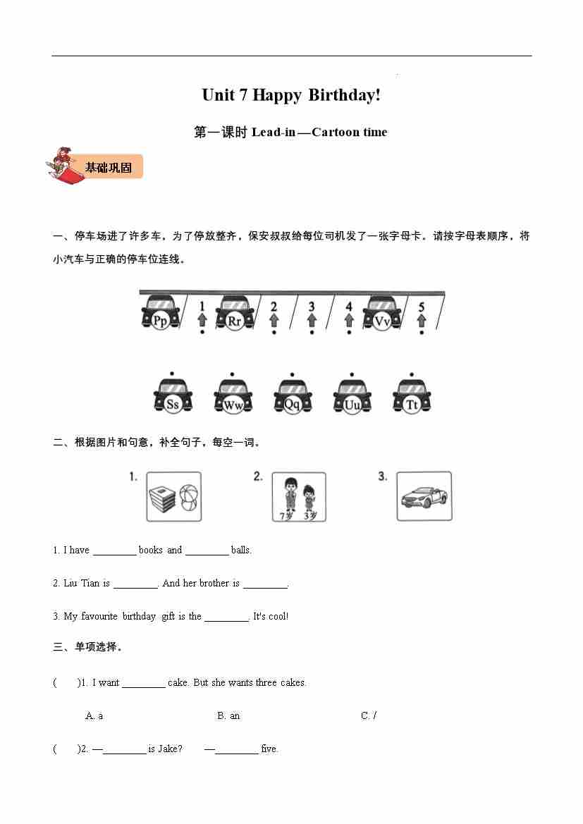 Unit 7 Happy Birthday Lead-in—Cartoon time-2024-2025学年三年级英语上册同步分层作业设计系列(译林版三起)