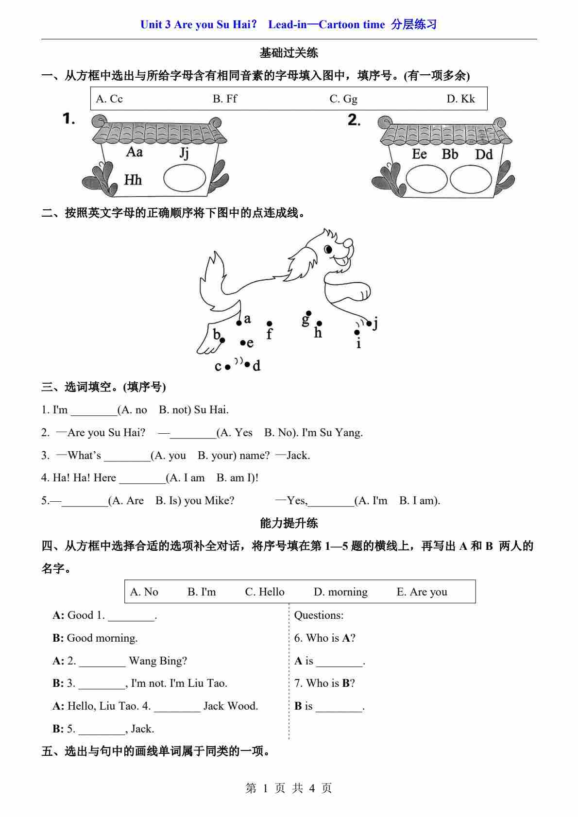 Unit 3.1 Lead-in—Cartoon time(分层练习)