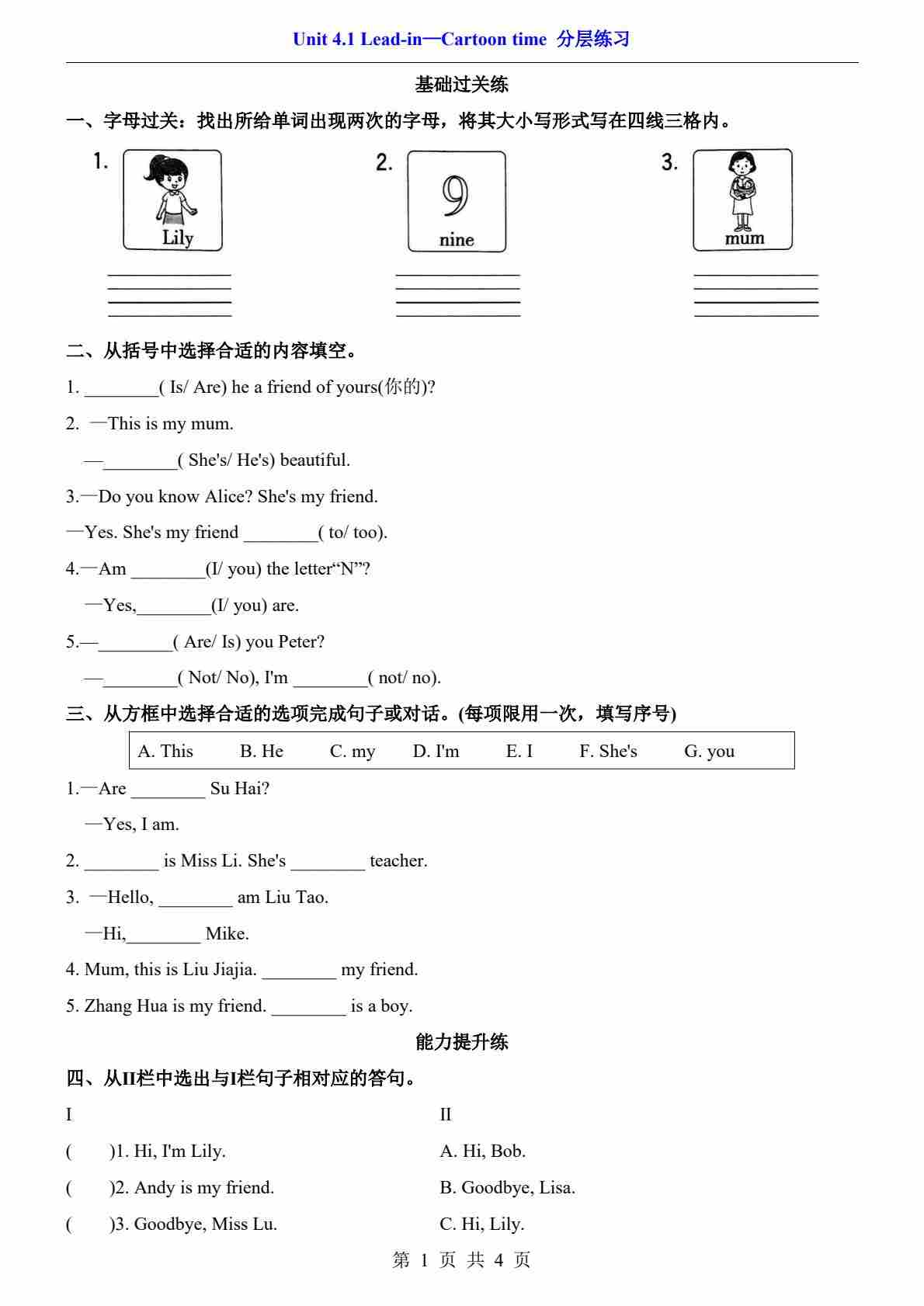 Unit 4.1 Lead-in—Cartoon time(分层练习)
