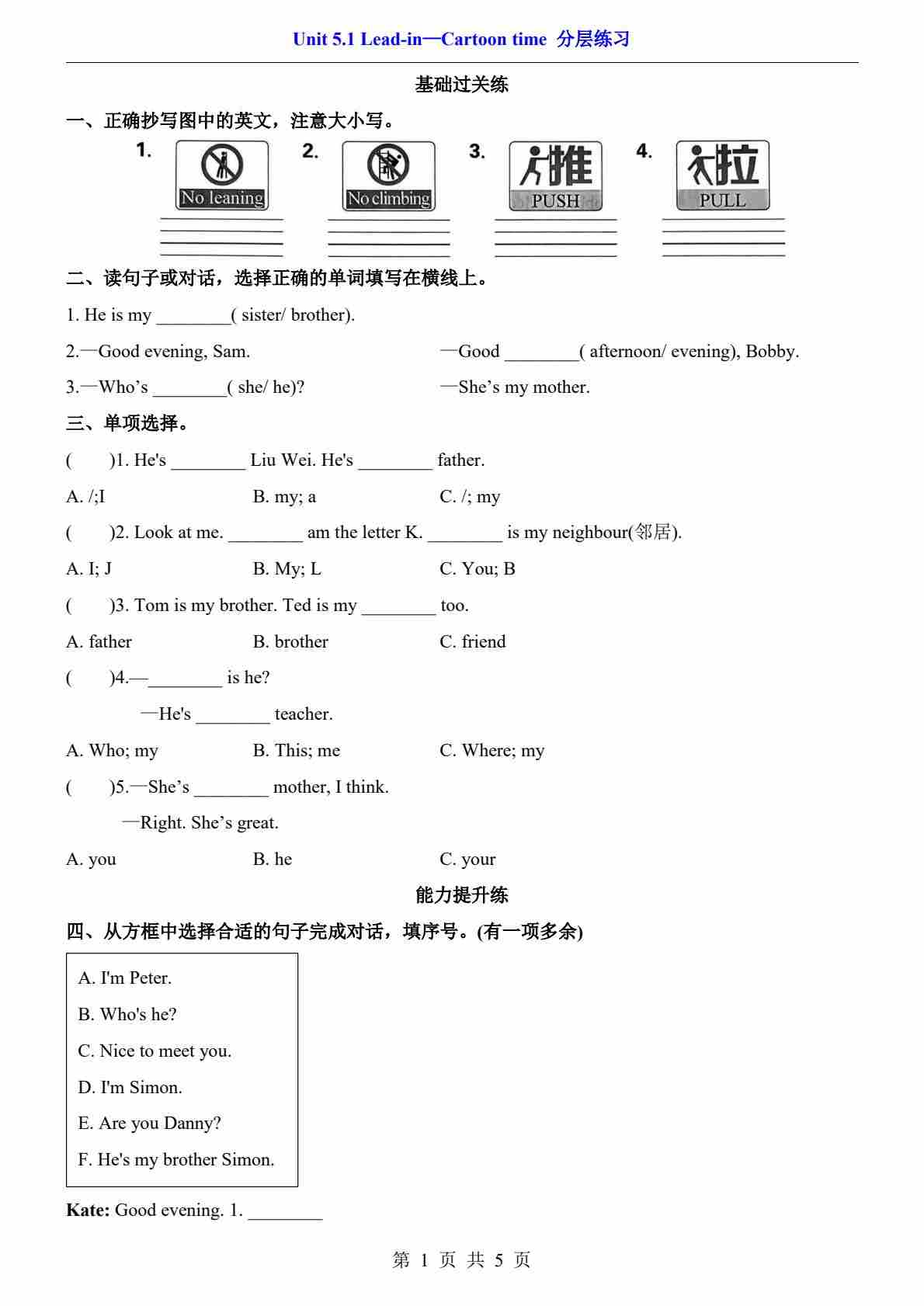 Unit 5.1 Lead-in—Cartoon time(分层练习)