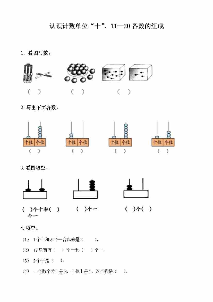 首页 > 全部 > 一课一练 > 练习题-7.2 认识计数单位“十”、11-20各数的组成