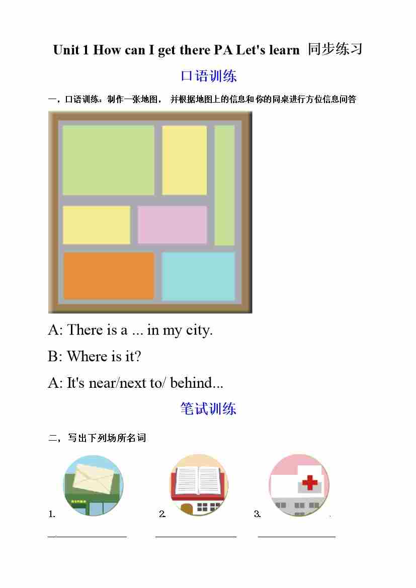 首页 > 全部 > 一课一练 > 六年级上册英语同步练习-Unit 1 How can I get there PA Let's learn (人教PEP,含答案)