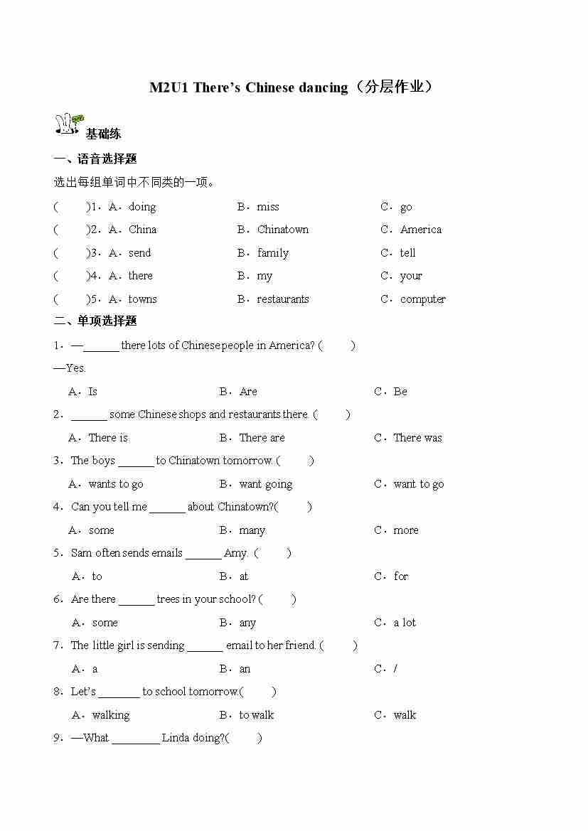 M2U1 There’s Chinese dancing(分层作业)英语外研版三起六年级上册