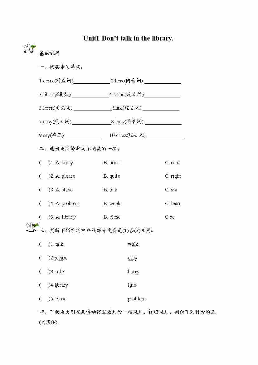 首页 > 全部 > 分层作业 > Module10 Unit1Don't talk in the library.(同步分层作业)(外研版三起)