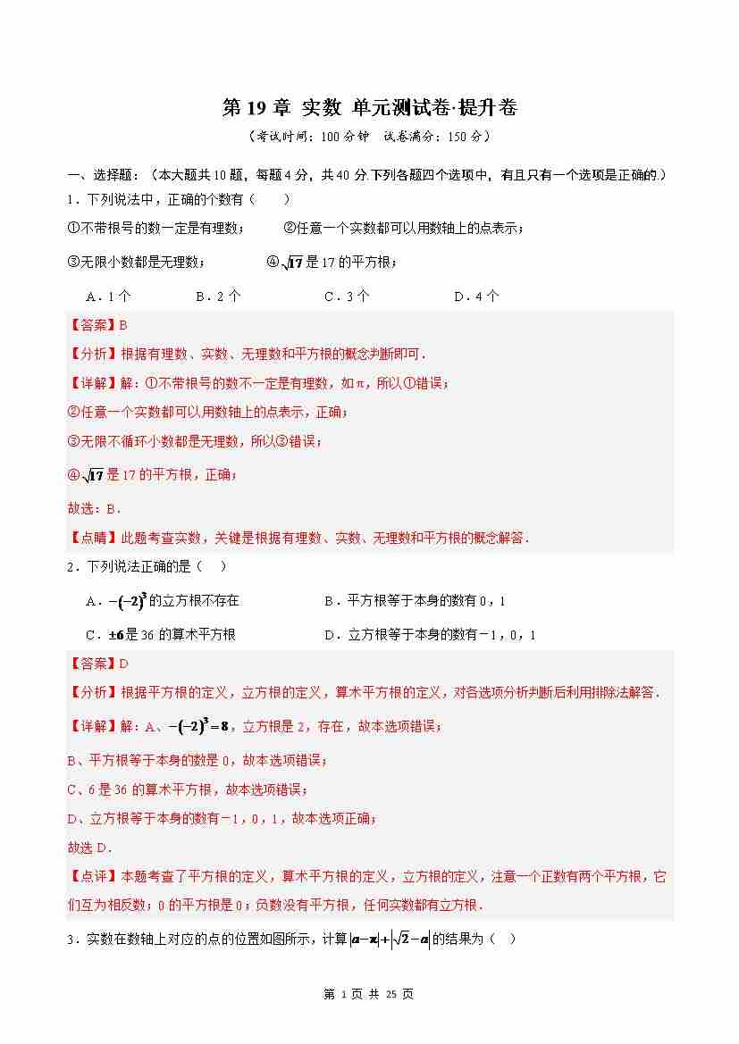 第19章 实数(高效培优单元测试·提升卷)(解析版)
