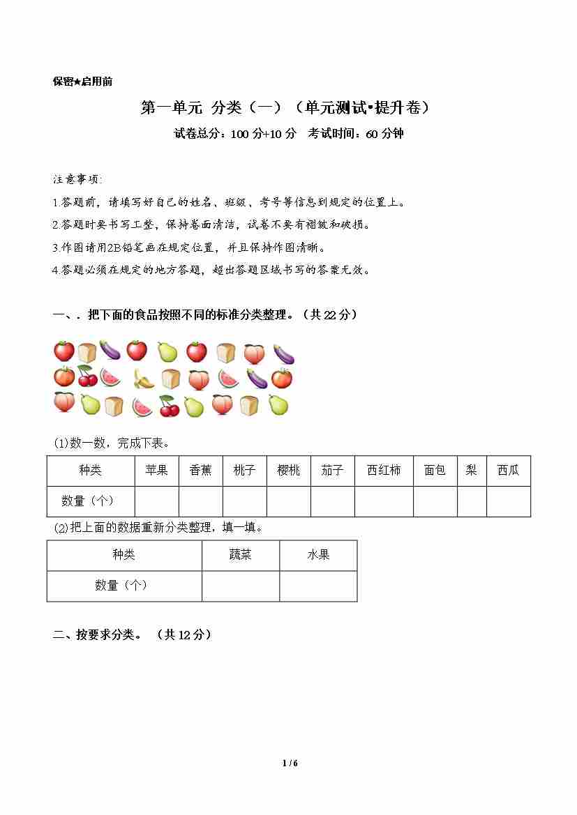 首页 > 全部 > 单元测试 > 第一单元 分类(一)(单元测试•提升卷)数学青岛版二年级上册(A4版)
