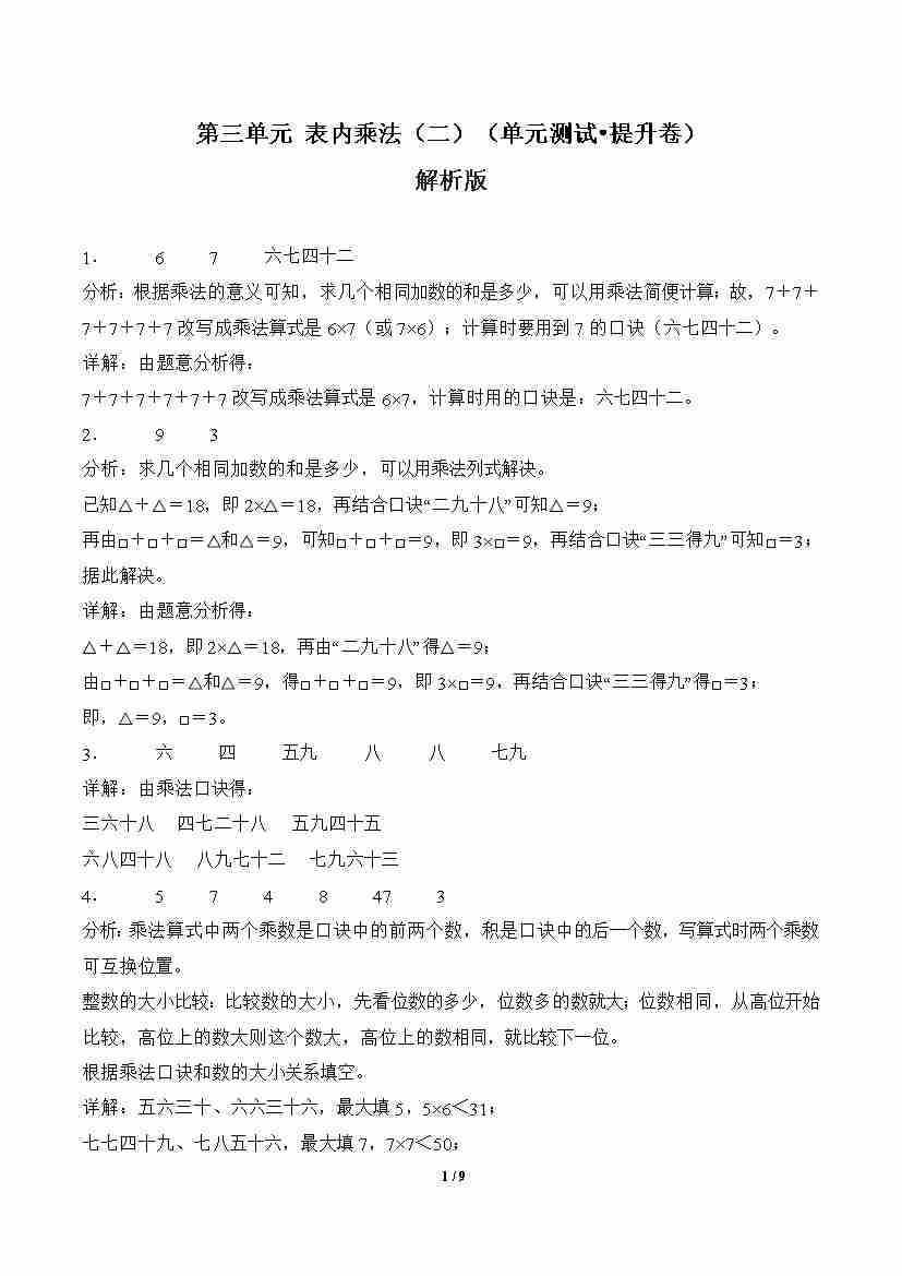 首页 > 全部 > 单元测试 > 第三单元 表内乘法(二)(单元测试•提升卷)数学青岛版二年级上册(解析版)