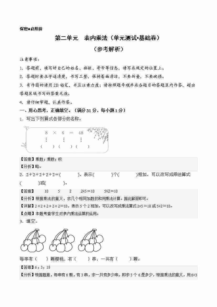 首页 > 全部 > 单元测试 > 第二单元 表内乘法(单元测试•基础卷)(参考解析)