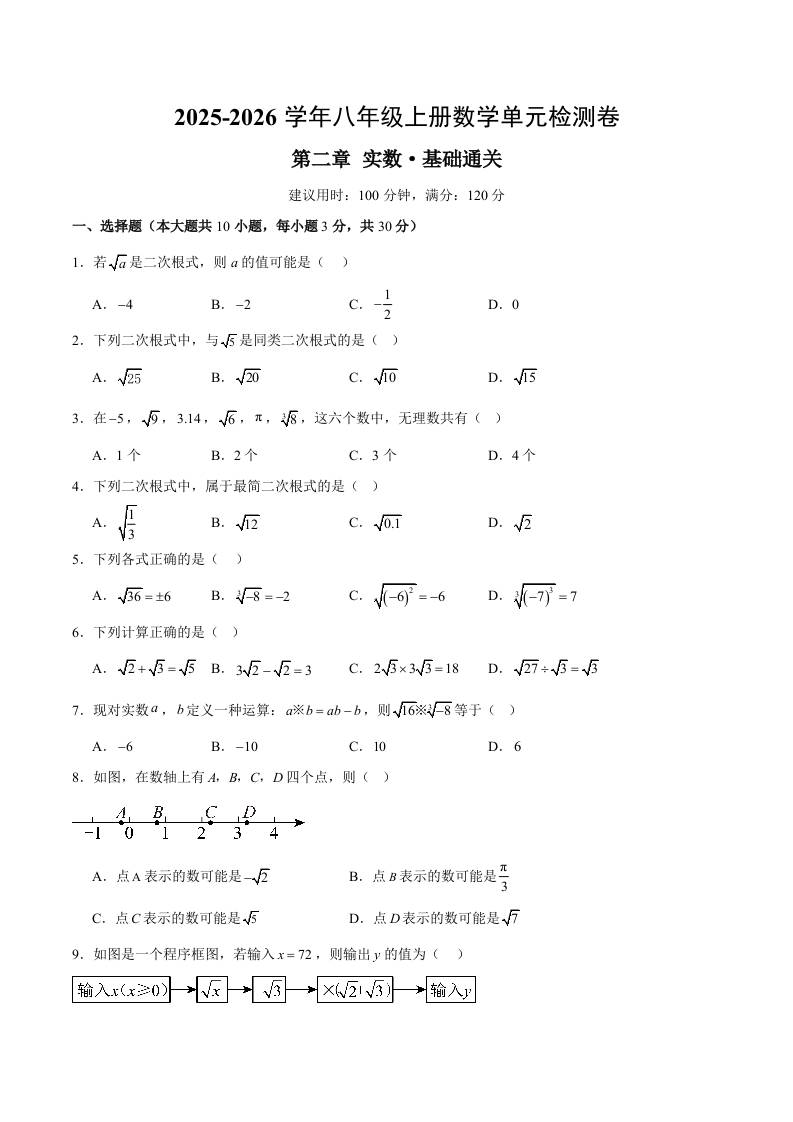 首页 > 全部 > 单元基础卷 > 第二章 实数测试·基础卷(考试版A4)