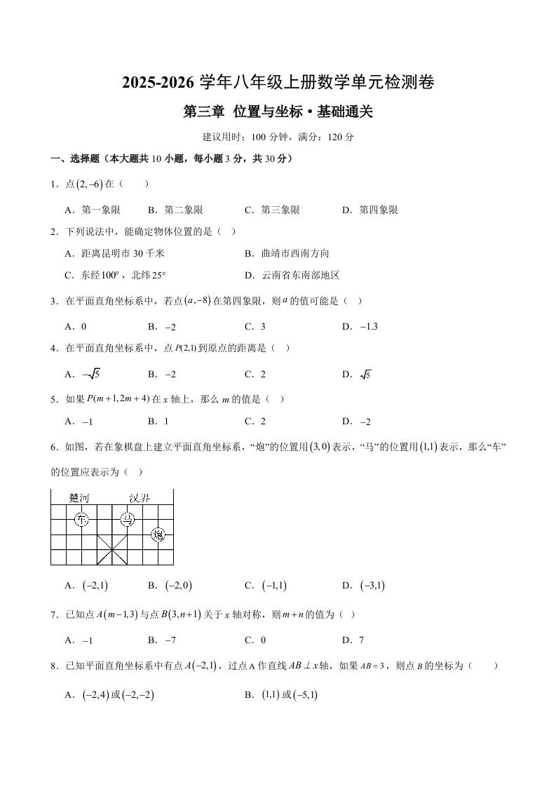 第三章 位置与坐标测试·基础卷(考试版A4)