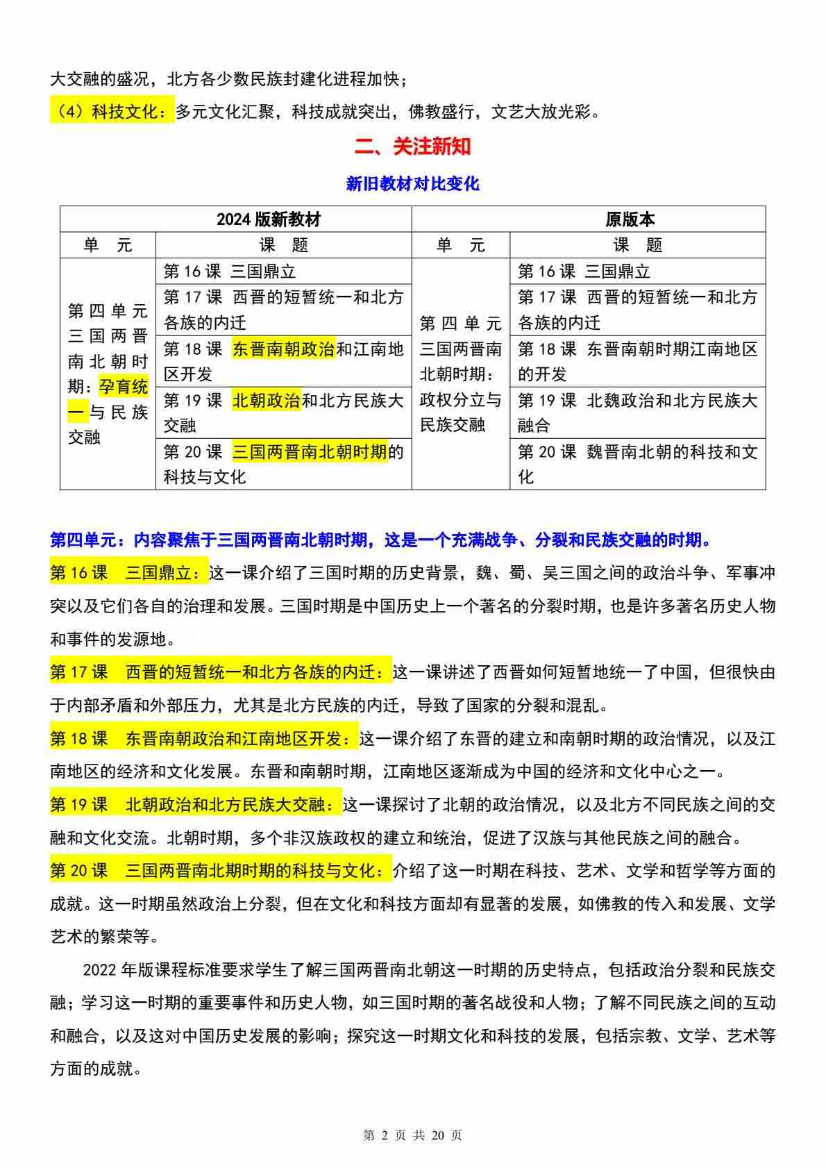 第四单元 三国两晋南北朝时期:孕育统一和民族交融【知识清单】