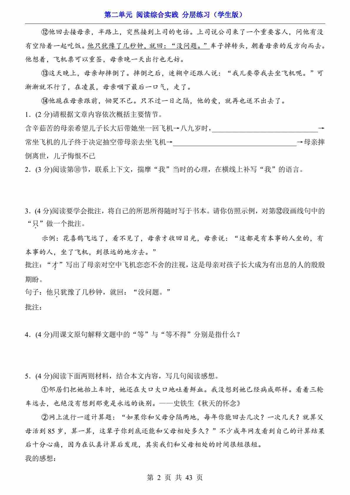 首页 > 全部 > 分层练习 > 第二单元 阅读综合实践(分层练习)