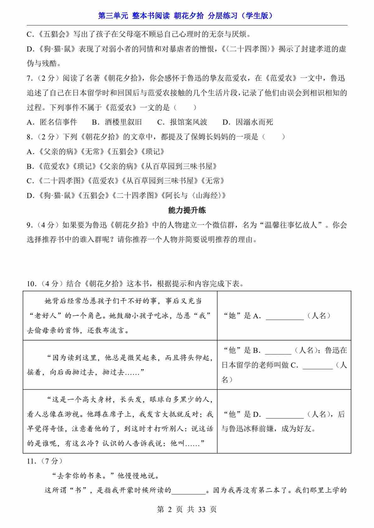 第三单元 整本书阅读 朝花夕拾(分层练习)