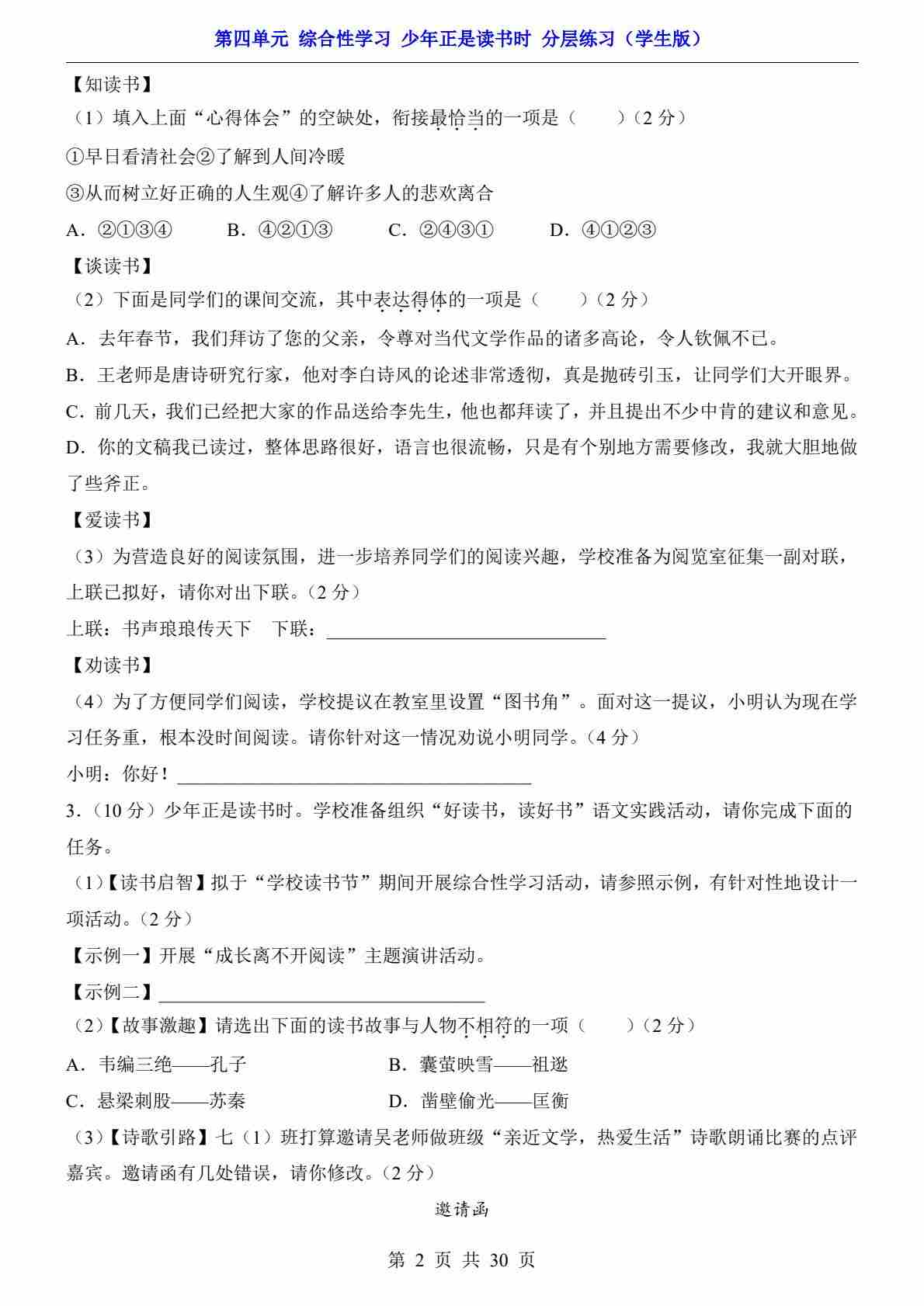第四单元 综合性学习 少年正是读书时(分层练习)